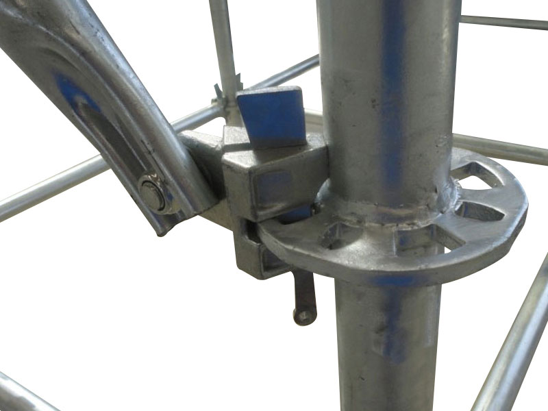 盤扣腳手架是進步前輩的模塊式腳手架系統,具有機能高、節約人工、搭拆便當、節約用量、整體美觀。是續扣件式、碗扣式腳手架之后的理想進級換代產物。這種盤扣式腳手架是經由過程打破傳統腳手架的扣件螺栓緊固連接方式,操作預先焊接在橫桿兩頭的接頭裝置和斜桿上的接頭裝置、立桿上焊接的八孔圓盤,操作重力楔形自鎖銷的道理,實現代替鋼管和扣件,將橫桿和立桿及斜桿連接起來,形成平面三角不變結構,再將平面結構進行立體組合,終形成不變的空間結構的技術。