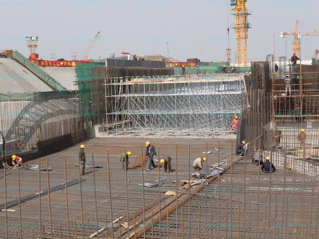 盤(pán)扣式腳手架:盤(pán)扣式腳手架分為支撐部分和頂板部分。盤(pán)扣式腳手架支撐部分由對(duì)接立桿和帶插銷(xiāo)橫桿組成。立桿上面焊有花盤(pán),橫桿的插銷(xiāo)直接插入到立桿的花盤(pán)中。立桿的花盤(pán)叫盤(pán)扣,所以稱之為盤(pán)扣式腳手架。對(duì)接立桿是在直徑為48鋼管上焊接了15公分直徑為60的鋼管實(shí)現(xiàn)對(duì)接,能夠?qū)崿F(xiàn)對(duì)不同高度的樓層進(jìn)行調(diào)節(jié)。橫桿是在不同的長(zhǎng)度上焊接了兩個(gè)插頭連接立桿。盤(pán)扣式腳手架頂板部分由鋼制主龍骨和鋼制副龍骨組成。鋼制主龍骨上面有托架,鋼制副龍骨兩端有卡片,連接時(shí)副龍骨的卡片直接卡到主龍骨的托架中既可。